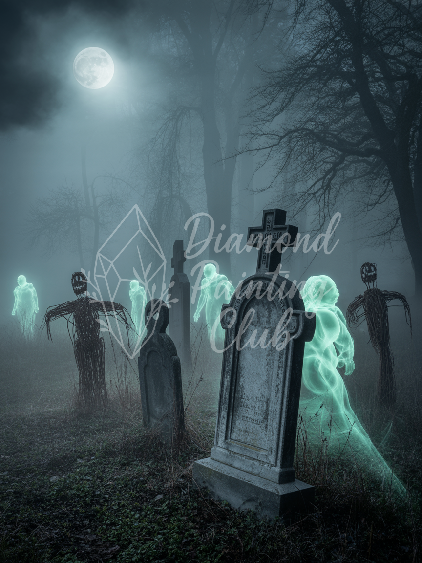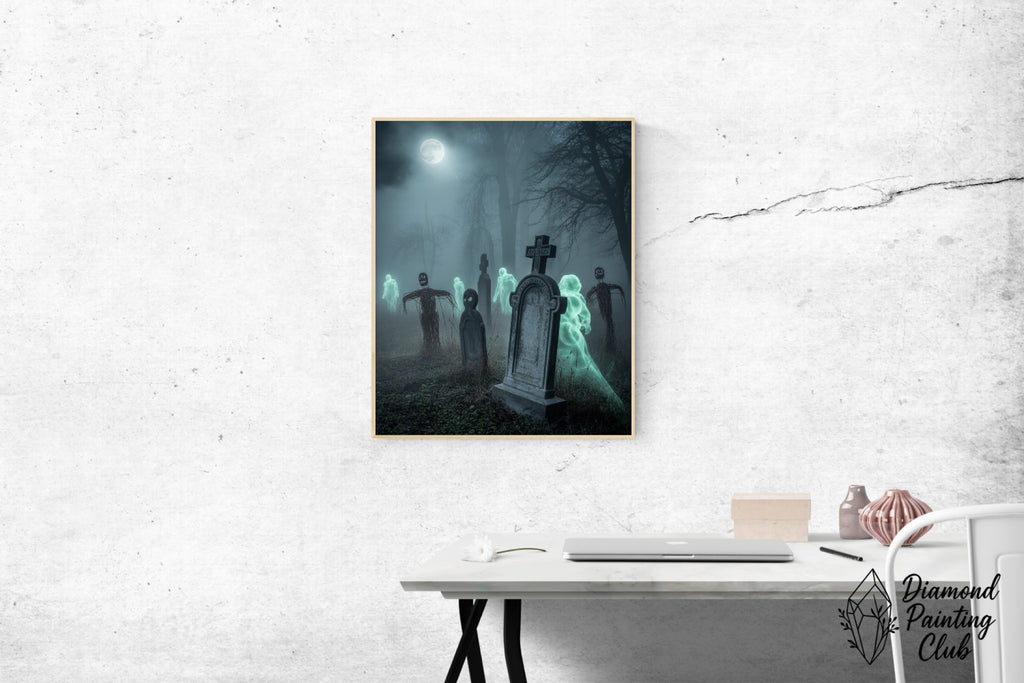 Broderie Diamant Fantômes au Cimetière d'Halloween