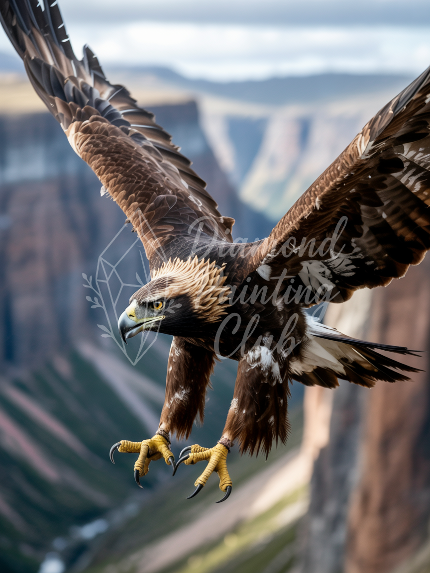 Broderie Diamant Aigle Royal en Plein Vol