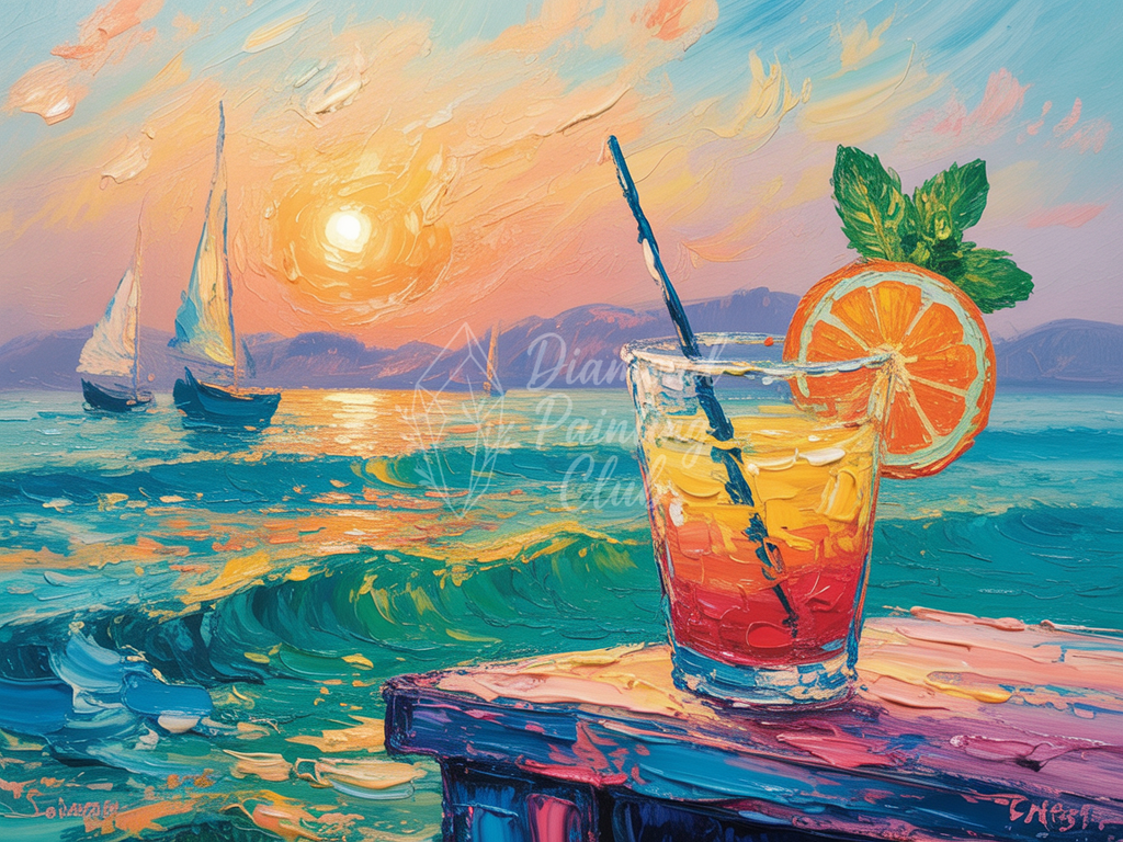 Broderie Diamant Cocktail Vagues et Voiliers