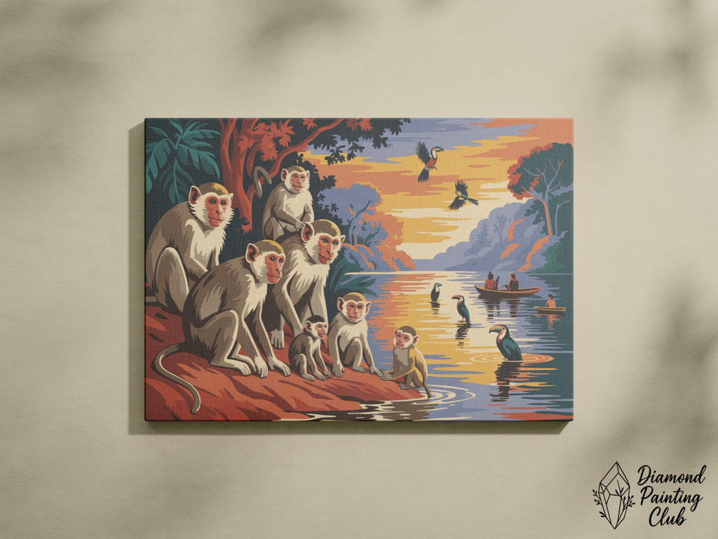Broderie Diamant Famille de Singes