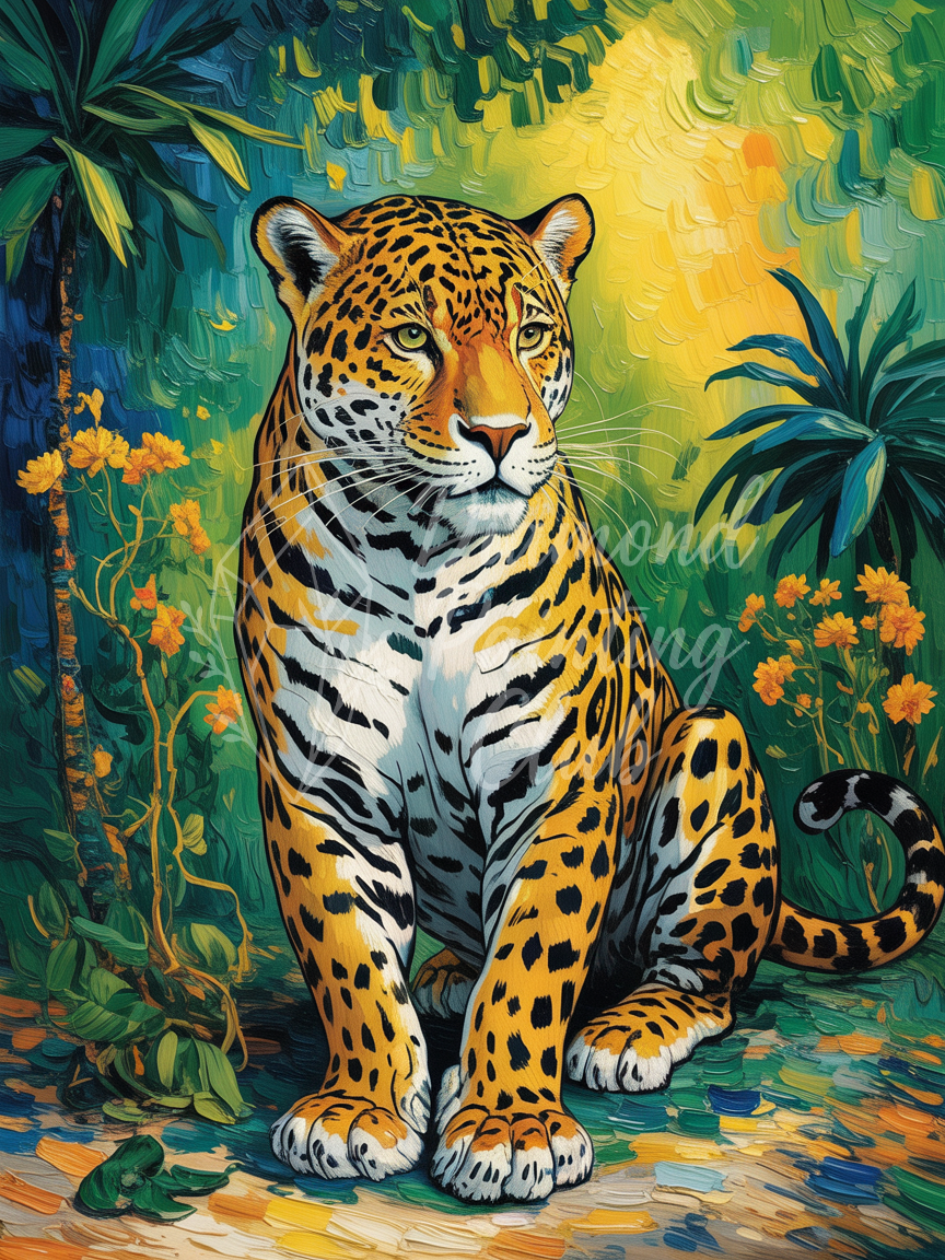Broderie Diamant Jaguar au Cœur de la Jungle