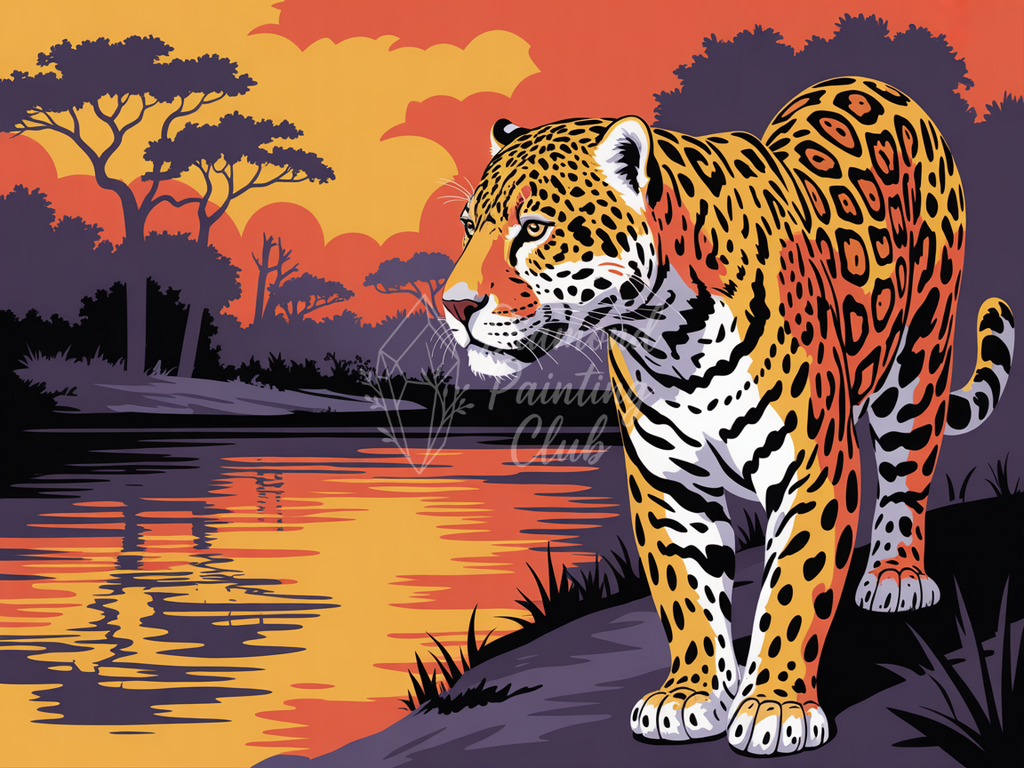 Broderie Diamant Jaguar au crépuscule