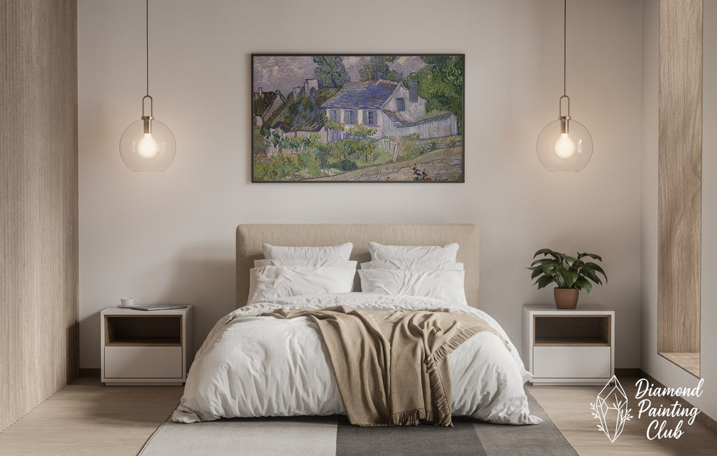 Ce motif de broderie diamant vous transporte dans le village pittoresque d'Auvers-sur-Oise, immortalisé par Vincent van Gogh dans sa toile "Maisons à Auvers". Cette œuvre capture l'essence des habitations rurales, avec leurs toits caractéristiques et leurs jardins verdoyants, sous un ciel nuageux mais vibrant. En assemblant chaque diamant, vous reproduirez les textures détaillées des toits de chaume et des murs blanchis, ainsi que les teintes luxuriantes des arbres et des feuillages. C'est une pièce idéale pour les amoureux des paysages champêtres et de l'architecture traditionnelle, apportant une touche d'authenticité et de sérénité à votre intérieur.