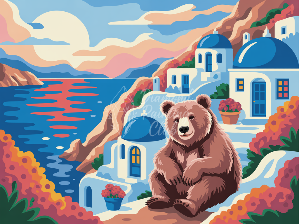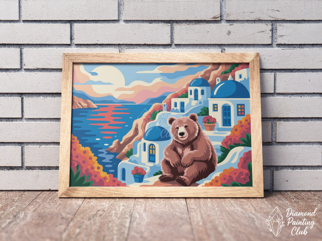 Broderie Diamant Ours à Santorin