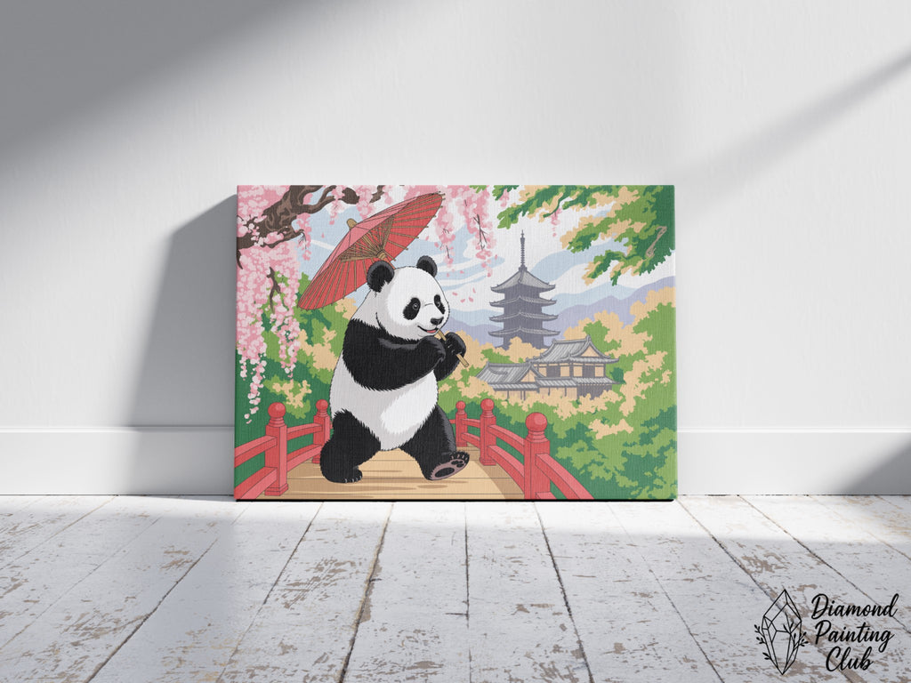 Broderie Diamant Panda et Cerisiers