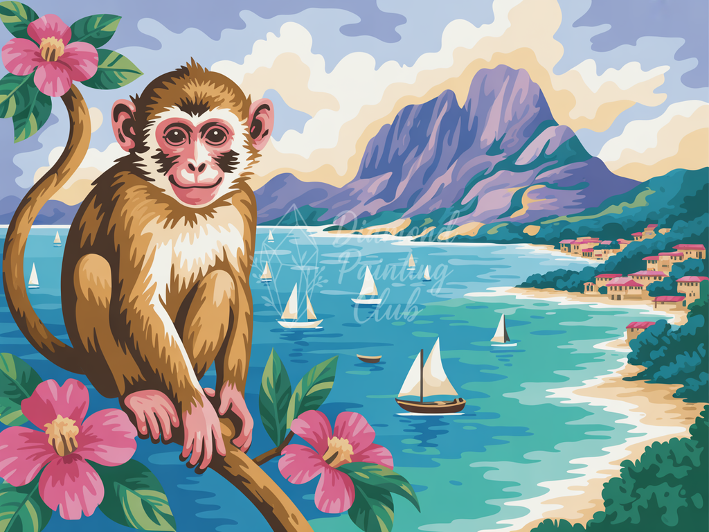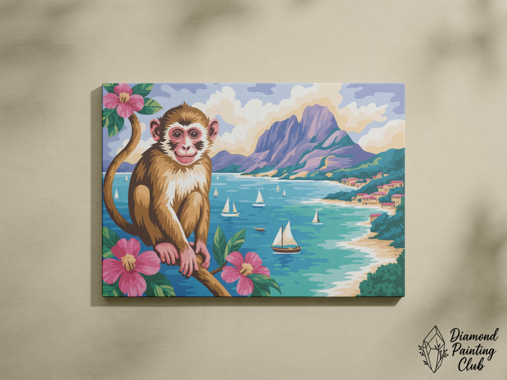 Broderie Diamant Singe à la Plage