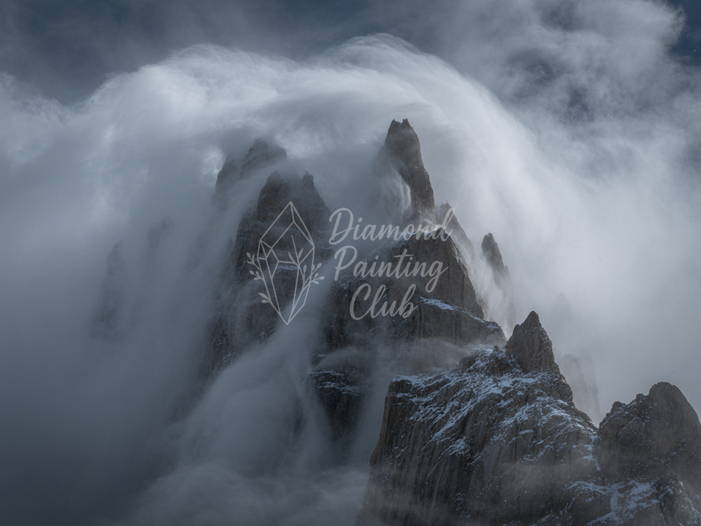 Broderie Diamant Sommet dans la Brume