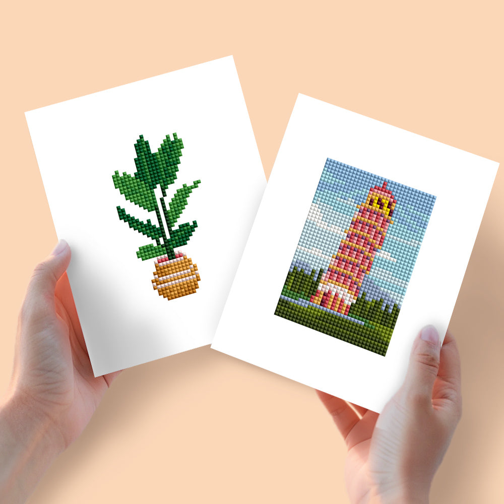 Mini Diamond Painting - Plante Verte & Tour de Briques (2 pièces)
